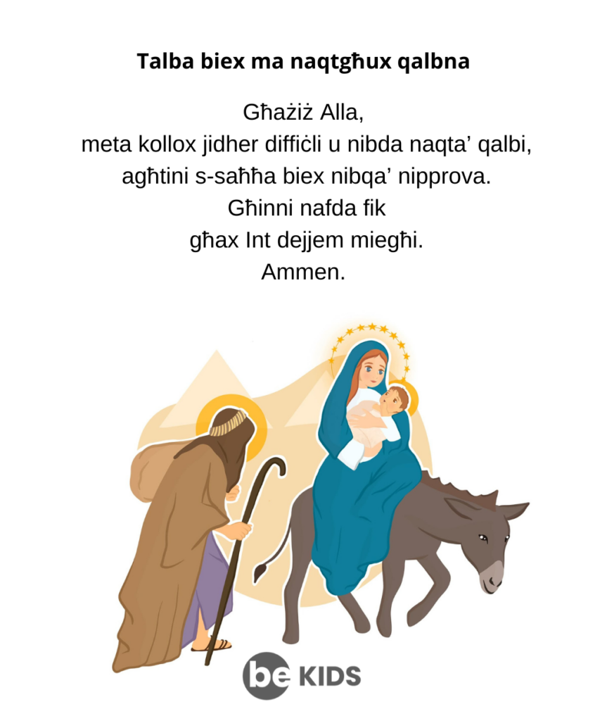 Fl-ewwel Milied, Marija u Ġużeppi, għaddew minn esperjenza ta’ vjaġġ twil  sakemm waslu Betlem. Matul il-vjaġġ ħassewhom għajjenin ħafna u għaddew  minn qtigħ il-qalb. Imma minkejja dan kollu l-vjaġġ spiċċa sabiħ ħafna għax  twieled Ġesù Bambin.